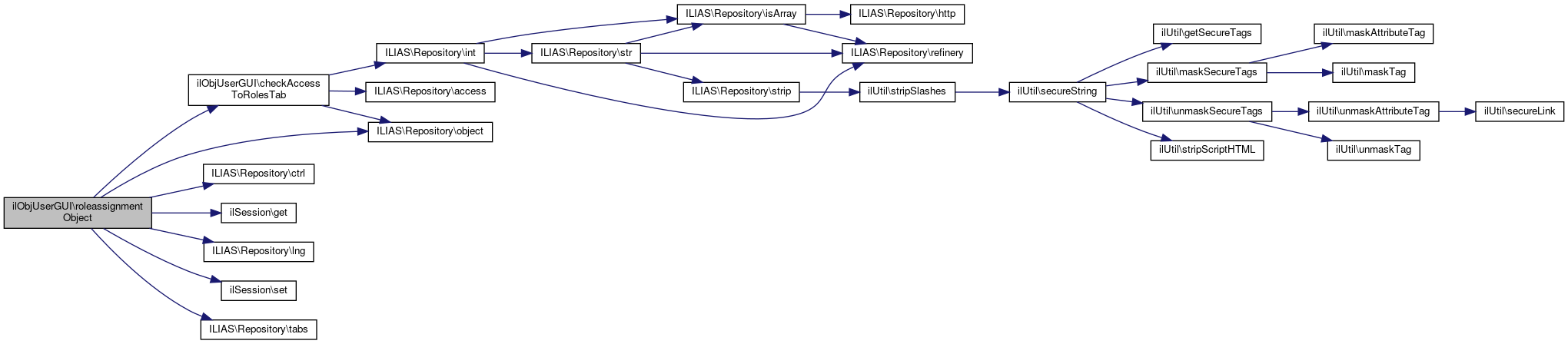 Here is the call graph for this function:| ilObjUserGUI::roleassignmentObject | ( | ) |