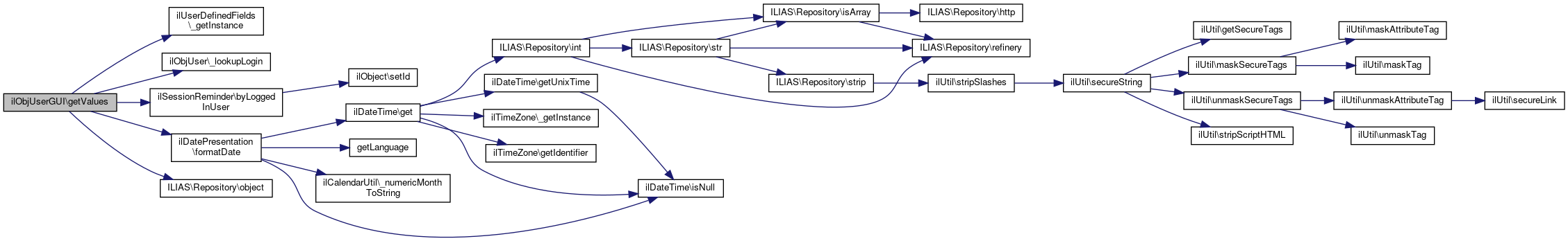 Here is the caller graph for this function:| ilObjUserGUI::getValues | ( | ) |