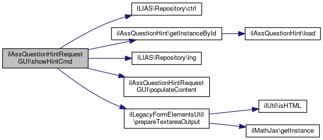 Here is the call graph for this function:| ilAssQuestionHintRequestGUI::getHintPresentationLinkTarget | ( | $hint_id, | |