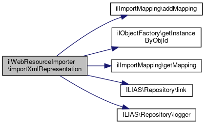 Here is the call graph for this function:| ilWebResourceImporter::importXmlRepresentation | ( | string | $a_entity, |