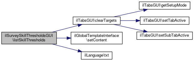 Here is the call graph for this function:| ilSurveySkillThresholdsGUI::listSkillThresholds | ( | ) |