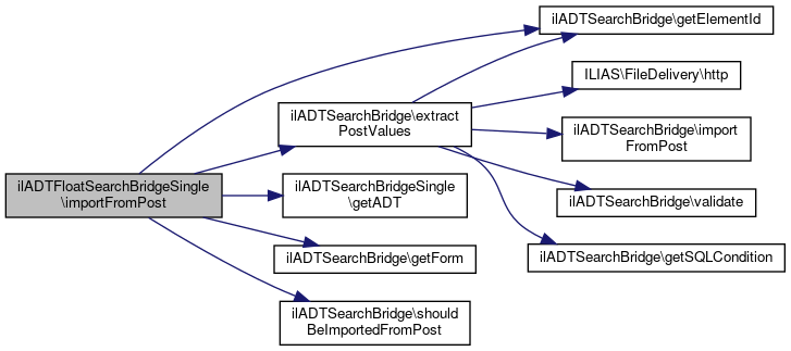Here is the call graph for this function:| ilADTFloatSearchBridgeSingle::importFromPost | ( | array | $a_post = null | ) |