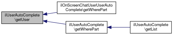 Here is the caller graph for this function:| ilUserAutoComplete::getUser | ( | ) |