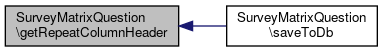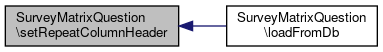 Here is the caller graph for this function:| SurveyMatrixQuestion::setRepeatColumnHeader | ( | bool | $a_value = false | ) |