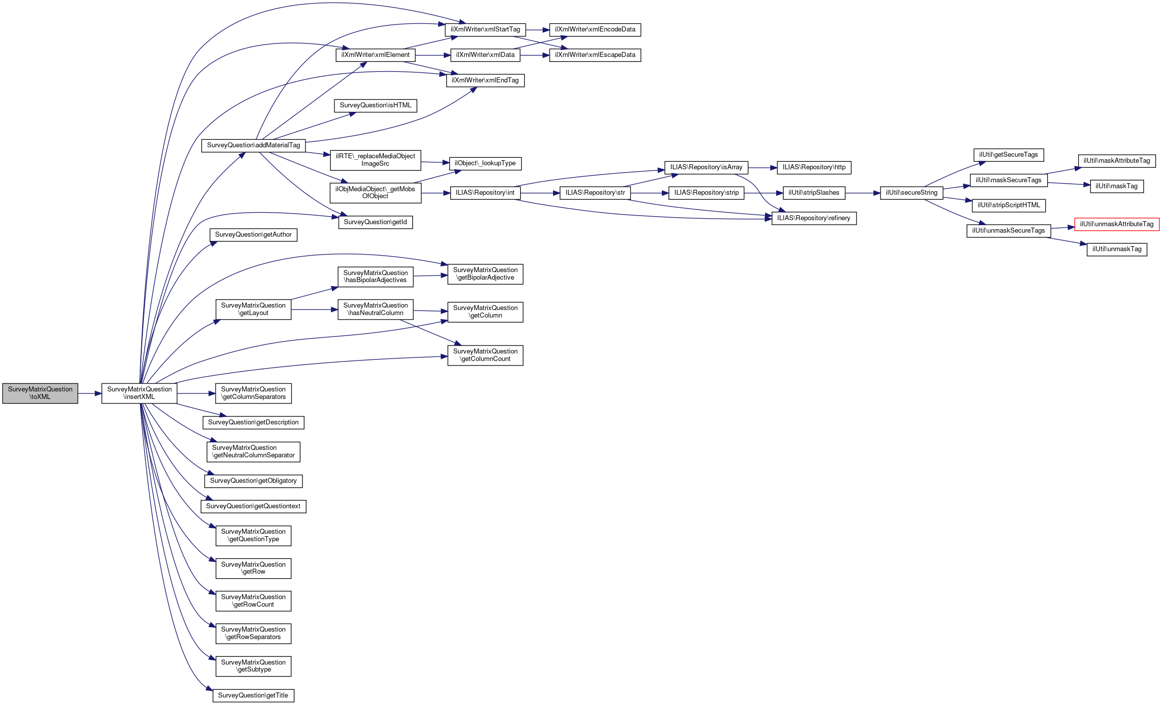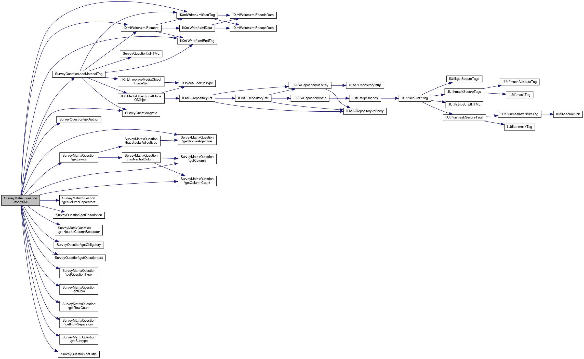 Here is the call graph for this function:| SurveyMatrixQuestion::toXML | ( | bool | $a_include_header = true, |