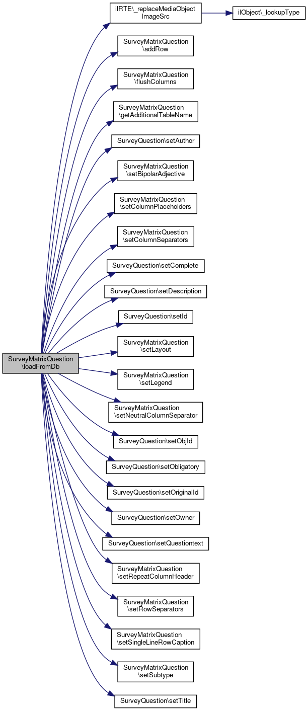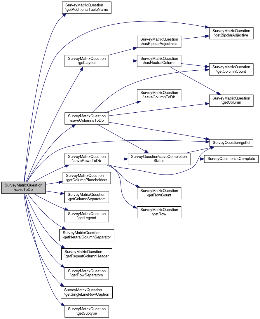 References SurveyQuestion\$db, $ilDB, SurveyQuestion\$original_id, getAdditionalTableName(), getBipolarAdjective(), getColumnPlaceholders(), getColumnSeparators(), SurveyQuestion\getId(), getLayout(), getLegend(), getNeutralColumnSeparator(), getRepeatColumnHeader(), getRowSeparators(), getSingleLineRowCaption(), getSubtype(), saveColumnsToDb(), and saveRowsToDb().