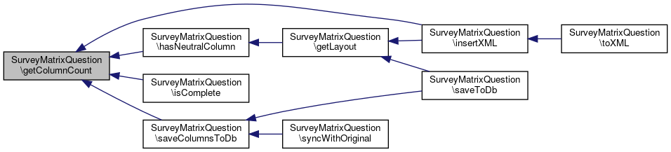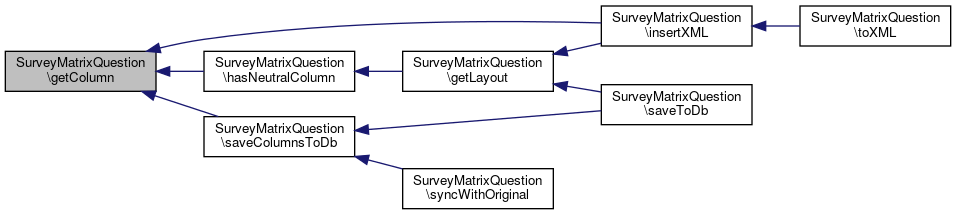Here is the caller graph for this function:| SurveyMatrixQuestion::syncWithOriginal | ( | ) |