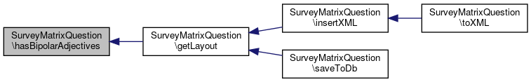 Here is the call graph for this function:| SurveyMatrixQuestion::setBipolarAdjective | ( | int | $a_index, |