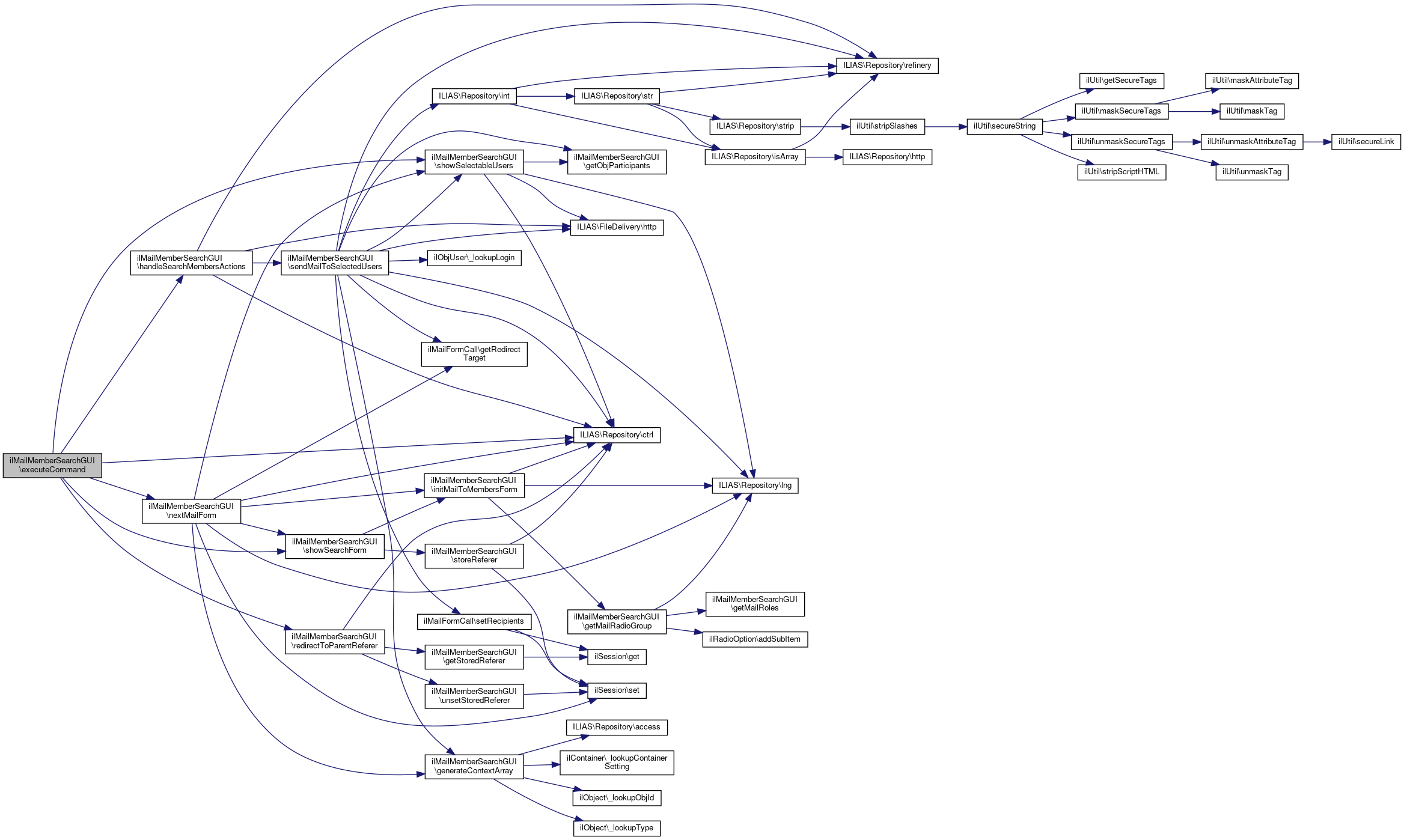 Here is the call graph for this function:| ilMailMemberSearchGUI::executeCommand | ( | ) |
