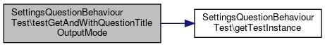 Here is the call graph for this function:| SettingsQuestionBehaviourTest::testGetAndWithQuestionTitleOutputMode | ( | int | $io | ) |