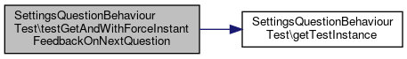 Here is the call graph for this function:| SettingsQuestionBehaviourTest::testGetAndWithForceInstantFeedbackOnNextQuestion | ( | bool | $io | ) |