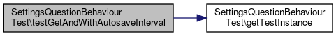 Here is the call graph for this function:| SettingsQuestionBehaviourTest::testGetAndWithAutosaveInterval | ( | int | $io | ) |