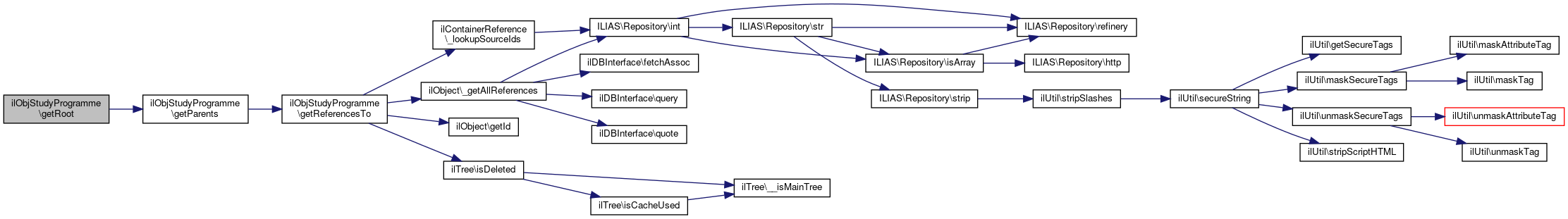 | Get the ilObjStudyProgramme that is the root node of the tree this programme is in.  More... | |