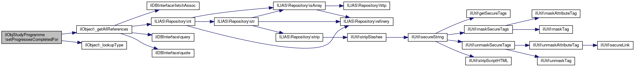 Here is the call graph for this function:| ilObjStudyProgramme::resetExpiryInfoSentFor | ( | ilPRGAssignment | $ass | ) |