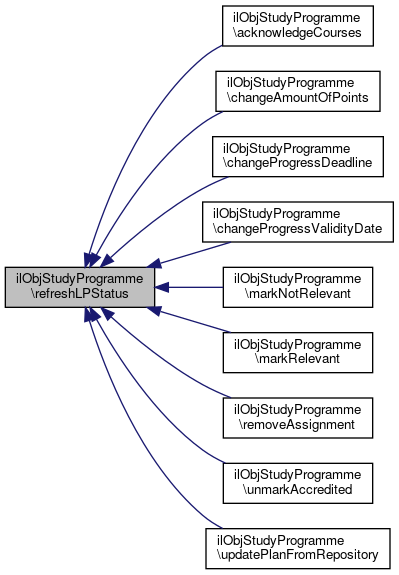 Here is the caller graph for this function:| ilObjStudyProgramme::updatePlanFromRepository | ( | int | $assignment_id, |