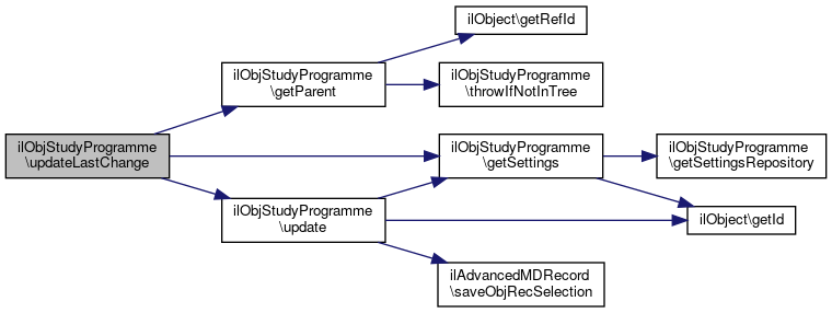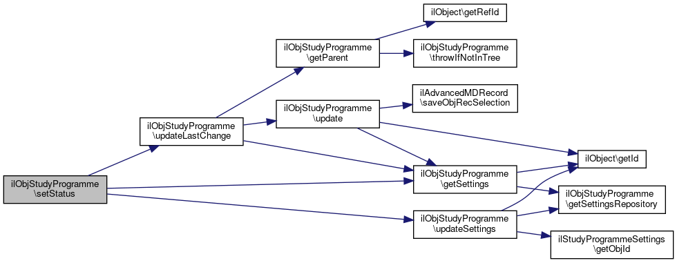 Here is the call graph for this function:| ilObjStudyProgramme::updateSettings | ( | ilStudyProgrammeSettings | $settings | ) |