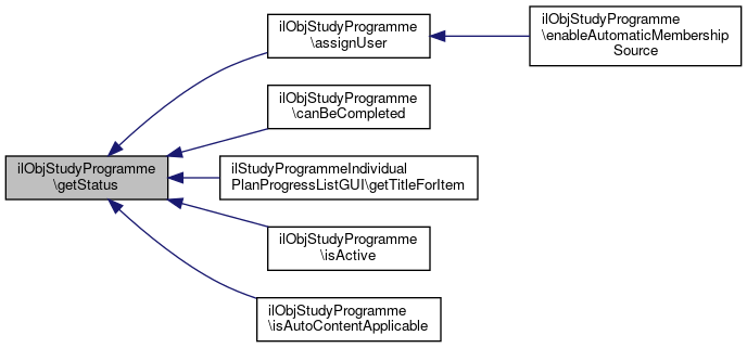 Here is the call graph for this function:| ilObjStudyProgramme::statusToRepr | ( | int | $status | ) |