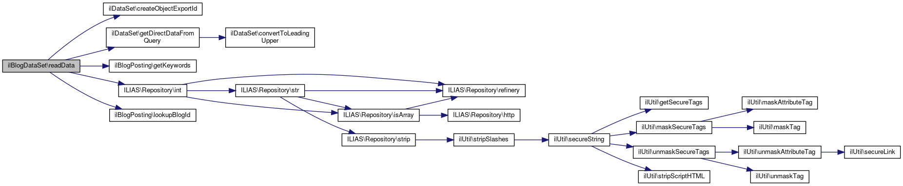 Here is the call graph for this function:| ilBlogDataSet::readData | ( | string | $a_entity, |