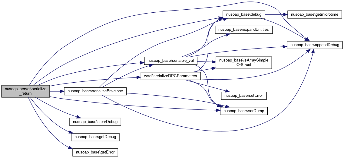 Here is the call graph for this function:| nusoap_server::serialize_return | ( | ) |