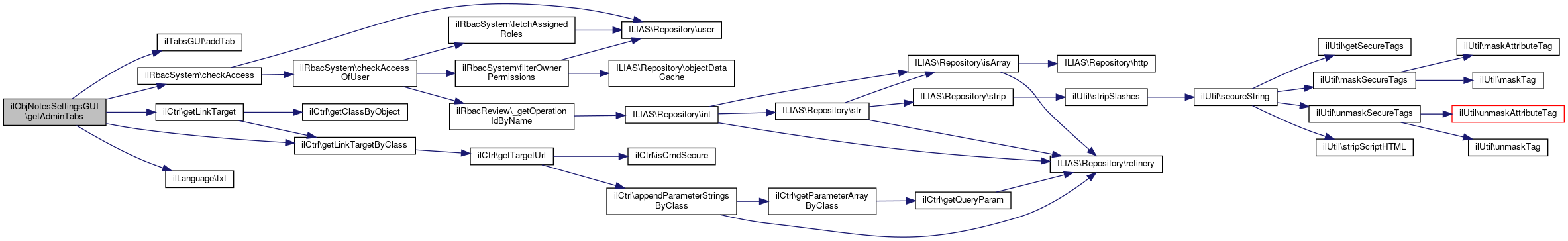 Here is the call graph for this function:| ilObjNotesSettingsGUI::getAdminTabs | ( | ) |