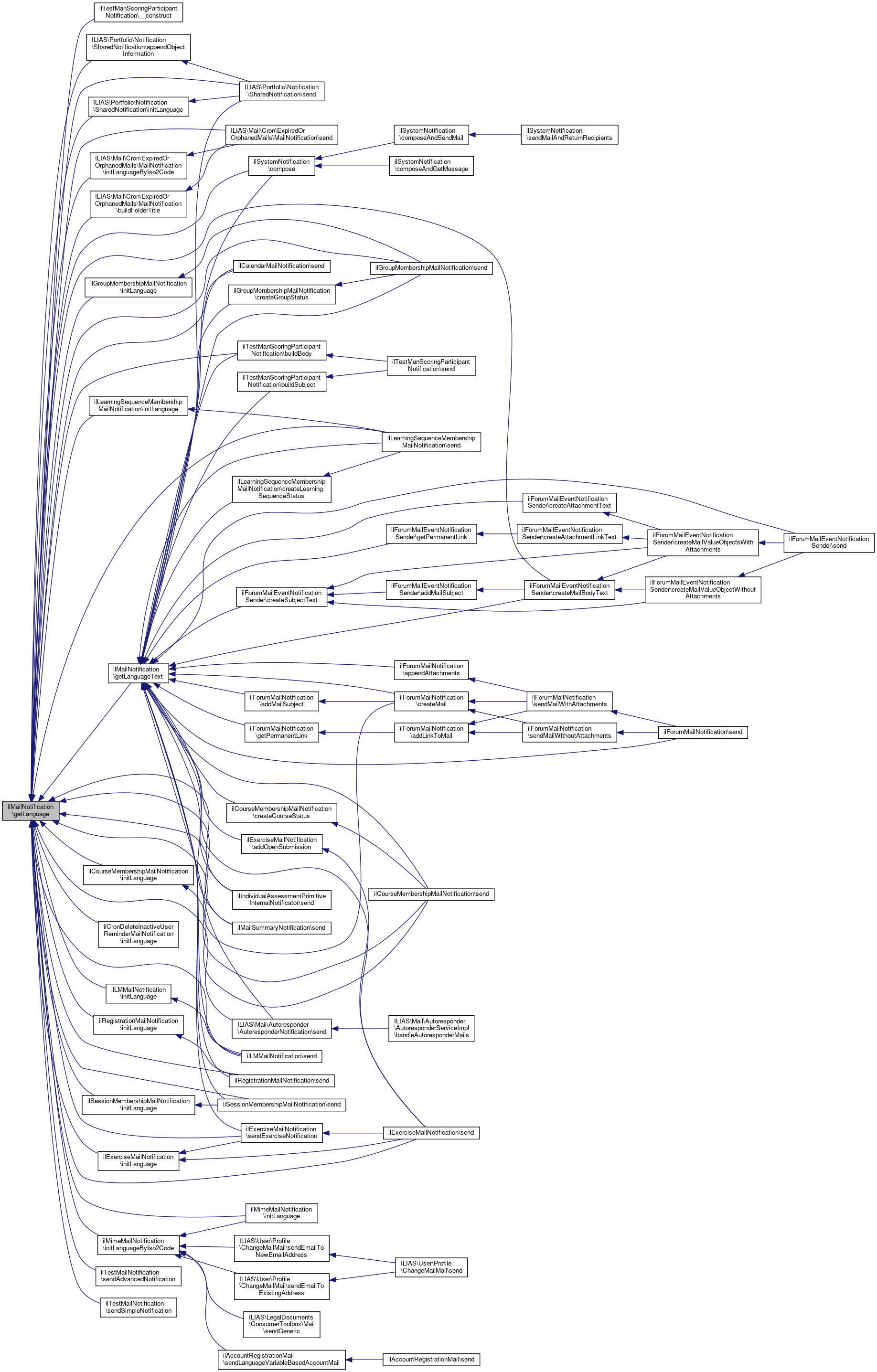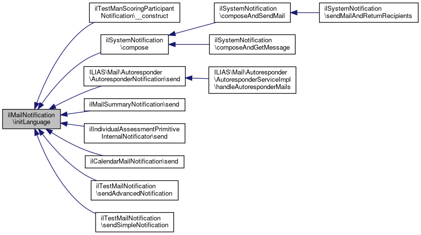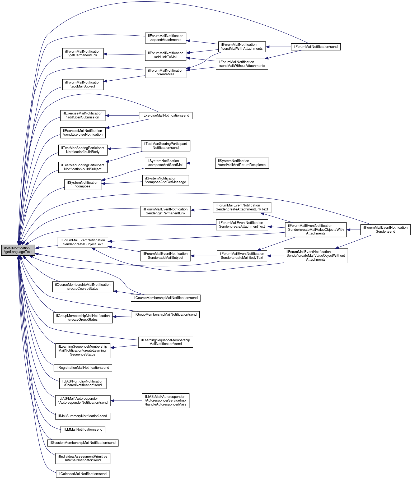 Referenced by ilTestManScoringParticipantNotification\__construct(), ILIAS\Portfolio\Notification\SharedNotification\appendObjectInformation(), ilTestManScoringParticipantNotification\buildBody(), ILIAS\Mail\Cron\ExpiredOrOrphanedMails\MailNotification\buildFolderTitle(), ilSystemNotification\compose(), ilForumMailNotification\createMail(), ilForumMailEventNotificationSender\createMailBodyText(), getLanguageText(), ilCronDeleteInactiveUserReminderMailNotification\initLanguage(), ilMimeMailNotification\initLanguage(), ilLMMailNotification\initLanguage(), ilRegistrationMailNotification\initLanguage(), ILIAS\Portfolio\Notification\SharedNotification\initLanguage(), ilSessionMembershipMailNotification\initLanguage(), ilExerciseMailNotification\initLanguage(), ilLearningSequenceMembershipMailNotification\initLanguage(), ilGroupMembershipMailNotification\initLanguage(), ilCourseMembershipMailNotification\initLanguage(), ILIAS\Mail\Cron\ExpiredOrOrphanedMails\MailNotification\initLanguageByIso2Code(), ilMimeMailNotification\initLanguageByIso2Code(), ilRegistrationMailNotification\send(), ILIAS\Portfolio\Notification\SharedNotification\send(), ILIAS\Mail\Autoresponder\AutoresponderNotification\send(), ilMailSummaryNotification\send(), ilLMMailNotification\send(), ILIAS\Mail\Cron\ExpiredOrOrphanedMails\MailNotification\send(), ilSessionMembershipMailNotification\send(), ilLearningSequenceMembershipMailNotification\send(), ilIndividualAssessmentPrimitiveInternalNotificator\send(), ilGroupMembershipMailNotification\send(), ilCalendarMailNotification\send(), ilExerciseMailNotification\send(), ilCourseMembershipMailNotification\send(), ilTestMailNotification\sendAdvancedNotification(), ilExerciseMailNotification\sendExerciseNotification(), and ilTestMailNotification\sendSimpleNotification().