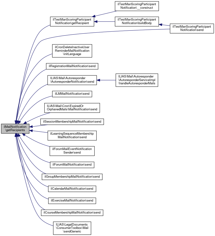 Referenced by ilTestManScoringParticipantNotification\getRecipient(), ilCronDeleteInactiveUserReminderMailNotification\initLanguage(), ilRegistrationMailNotification\send(), ilTestManScoringParticipantNotification\send(), ILIAS\Mail\Autoresponder\AutoresponderNotification\send(), ilLMMailNotification\send(), ILIAS\Mail\Cron\ExpiredOrOrphanedMails\MailNotification\send(), ilSessionMembershipMailNotification\send(), ilLearningSequenceMembershipMailNotification\send(), ilForumMailEventNotificationSender\send(), ilForumMailNotification\send(), ilGroupMembershipMailNotification\send(), ilCalendarMailNotification\send(), ilExerciseMailNotification\send(), ilCourseMembershipMailNotification\send(), and ILIAS\LegalDocuments\ConsumerToolbox\Mail\sendGeneric().