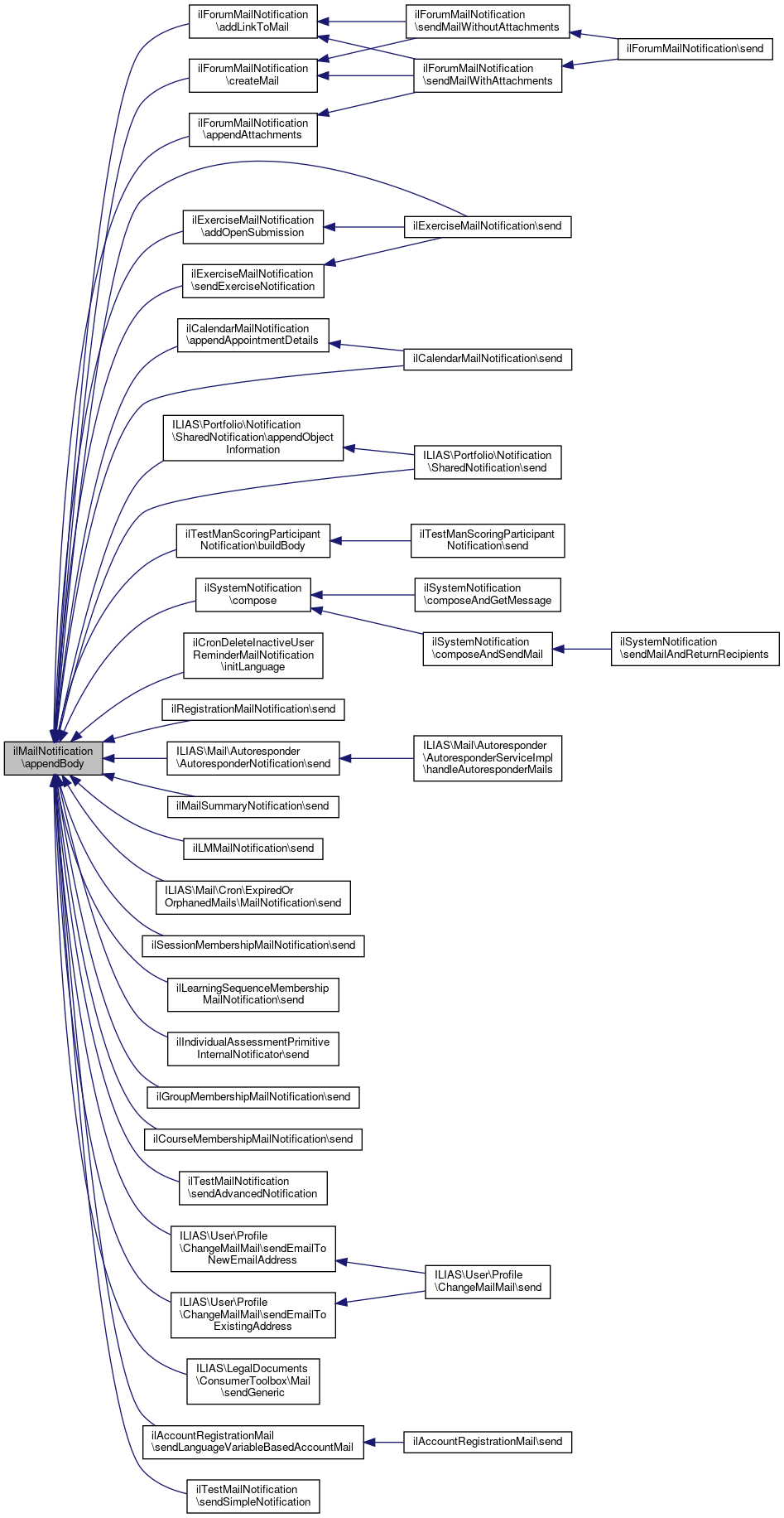 Referenced by ilForumMailNotification\addMailSubject(), ilExerciseMailNotification\addOpenSubmission(), ilForumMailNotification\appendAttachments(), ilTestManScoringParticipantNotification\buildBody(), ilTestManScoringParticipantNotification\buildSubject(), ilSystemNotification\compose(), ilForumMailEventNotificationSender\createAttachmentText(), ilCourseMembershipMailNotification\createCourseStatus(), ilGroupMembershipMailNotification\createGroupStatus(), ilLearningSequenceMembershipMailNotification\createLearningSequenceStatus(), ilForumMailNotification\createMail(), ilForumMailEventNotificationSender\createMailBodyText(), ilForumMailEventNotificationSender\createSubjectText(), ilForumMailNotification\getPermanentLink(), ilForumMailEventNotificationSender\getPermanentLink(), ilRegistrationMailNotification\send(), ILIAS\Portfolio\Notification\SharedNotification\send(), ILIAS\Mail\Autoresponder\AutoresponderNotification\send(), ilMailSummaryNotification\send(), ilLMMailNotification\send(), ilSessionMembershipMailNotification\send(), ilLearningSequenceMembershipMailNotification\send(), ilForumMailEventNotificationSender\send(), ilIndividualAssessmentPrimitiveInternalNotificator\send(), ilForumMailNotification\send(), ilGroupMembershipMailNotification\send(), ilCalendarMailNotification\send(), ilExerciseMailNotification\send(), ilCourseMembershipMailNotification\send(), and ilExerciseMailNotification\sendExerciseNotification().