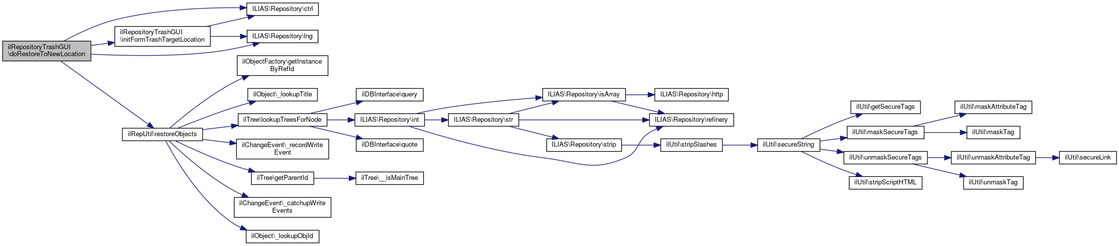 Here is the call graph for this function:| ilRepositoryTrashGUI::doRestoreToNewLocation | ( | ) |
