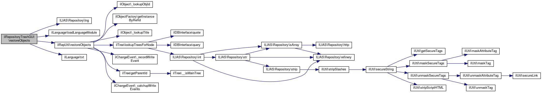 Here is the call graph for this function:| ilRepositoryTrashGUI::restoreObjects | ( | int | $a_cur_ref_id, |
