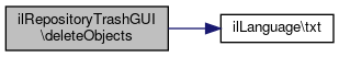 Here is the call graph for this function:| ilRepositoryTrashGUI::deleteObjects | ( | int | $a_cur_ref_id, |