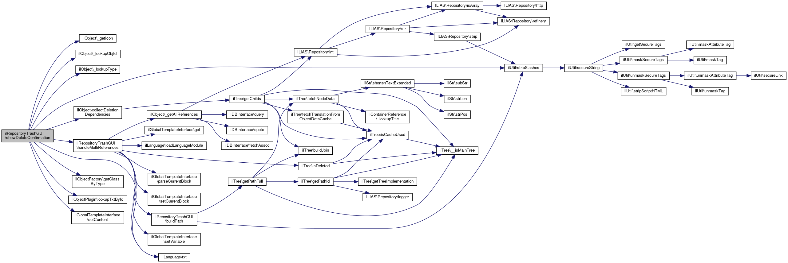 Here is the call graph for this function:| ilRepositoryTrashGUI::showDeleteConfirmation | ( | ?array | $a_ids, |