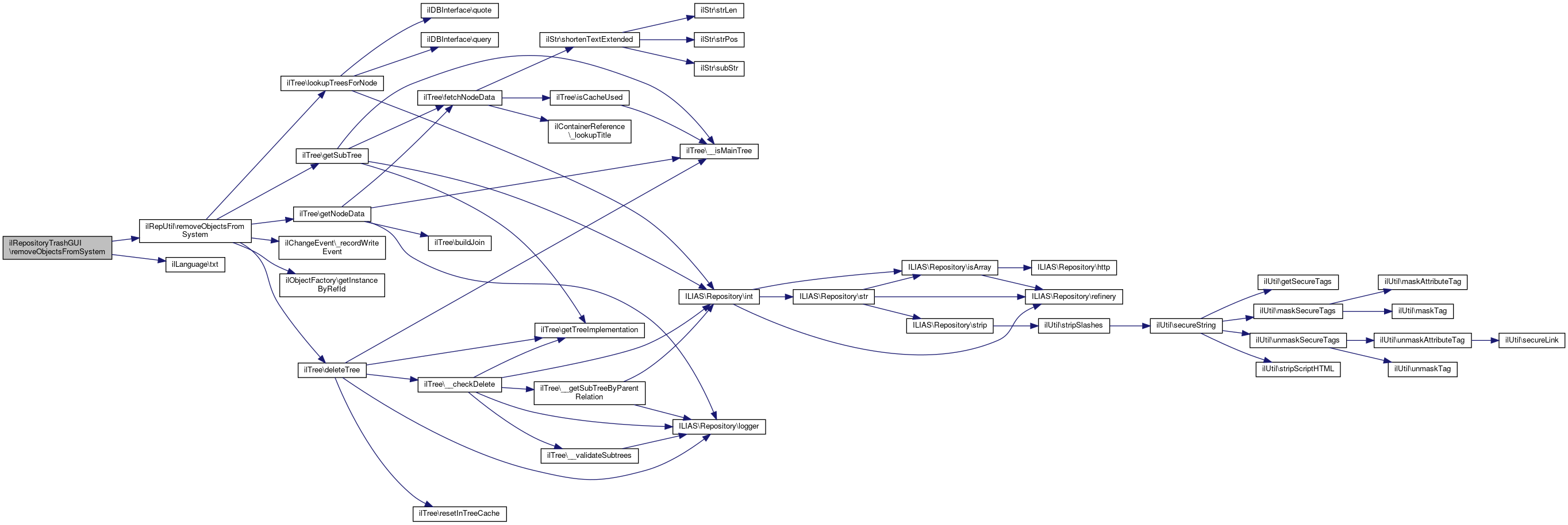 Here is the caller graph for this function:| ilRepositoryTrashGUI::removeObjectsFromSystem | ( | array | $a_ref_ids, |