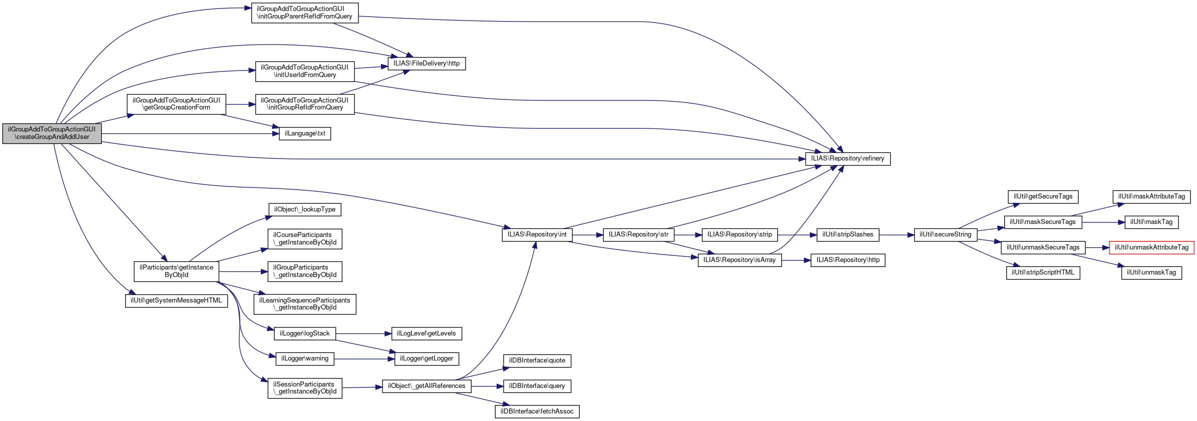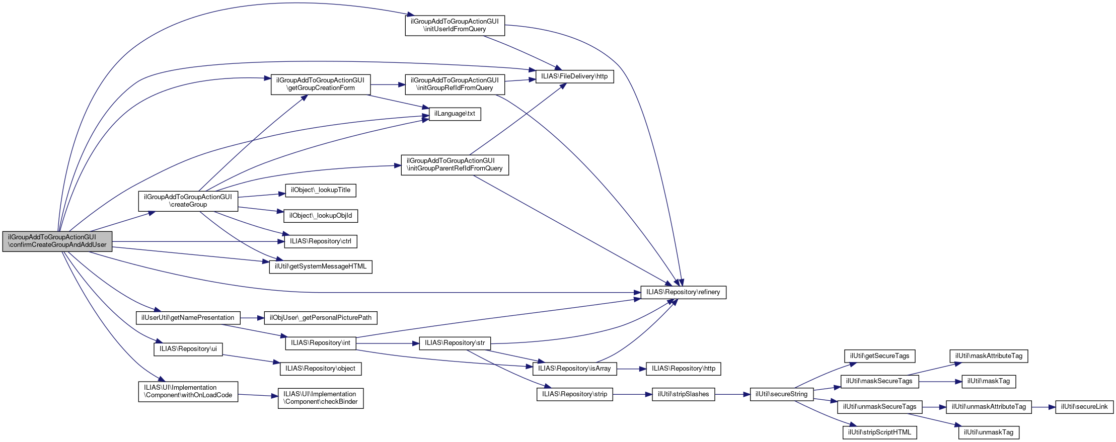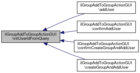 Here is the call graph for this function:| ilGroupAddToGroupActionGUI::confirmCreateGroupAndAddUser | ( | ) |
