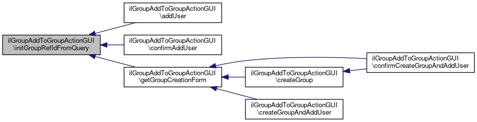 Here is the caller graph for this function:| ilGroupAddToGroupActionGUI::createGroupAndAddUser | ( | ) |