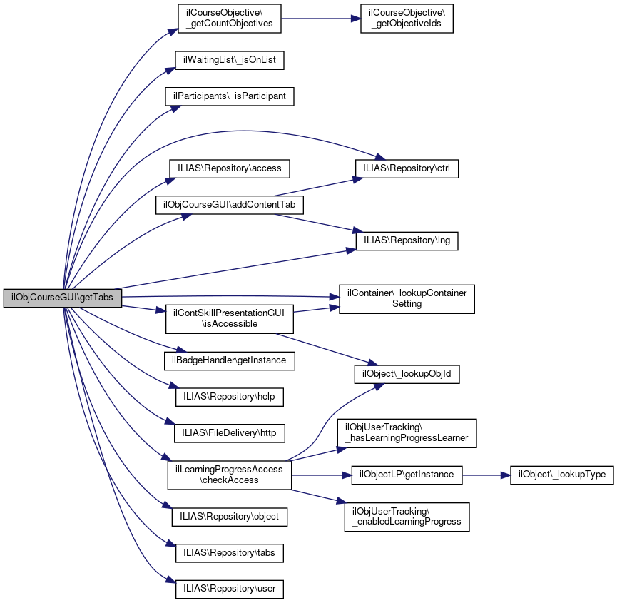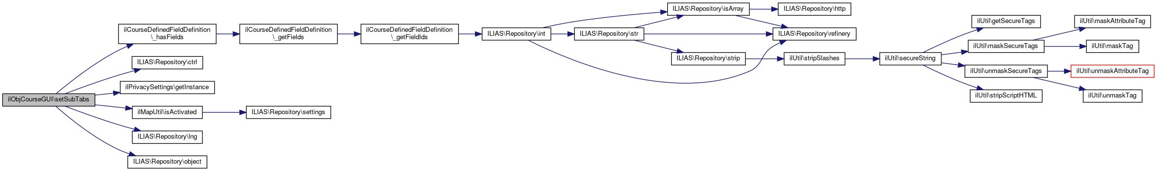 Here is the call graph for this function:| ilObjCourseGUI::setSubTabs | ( | string | $a_tab | ) |