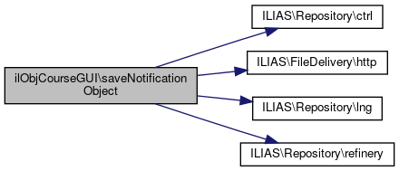 Here is the call graph for this function:| ilObjCourseGUI::saveNotificationObject | ( | ) |