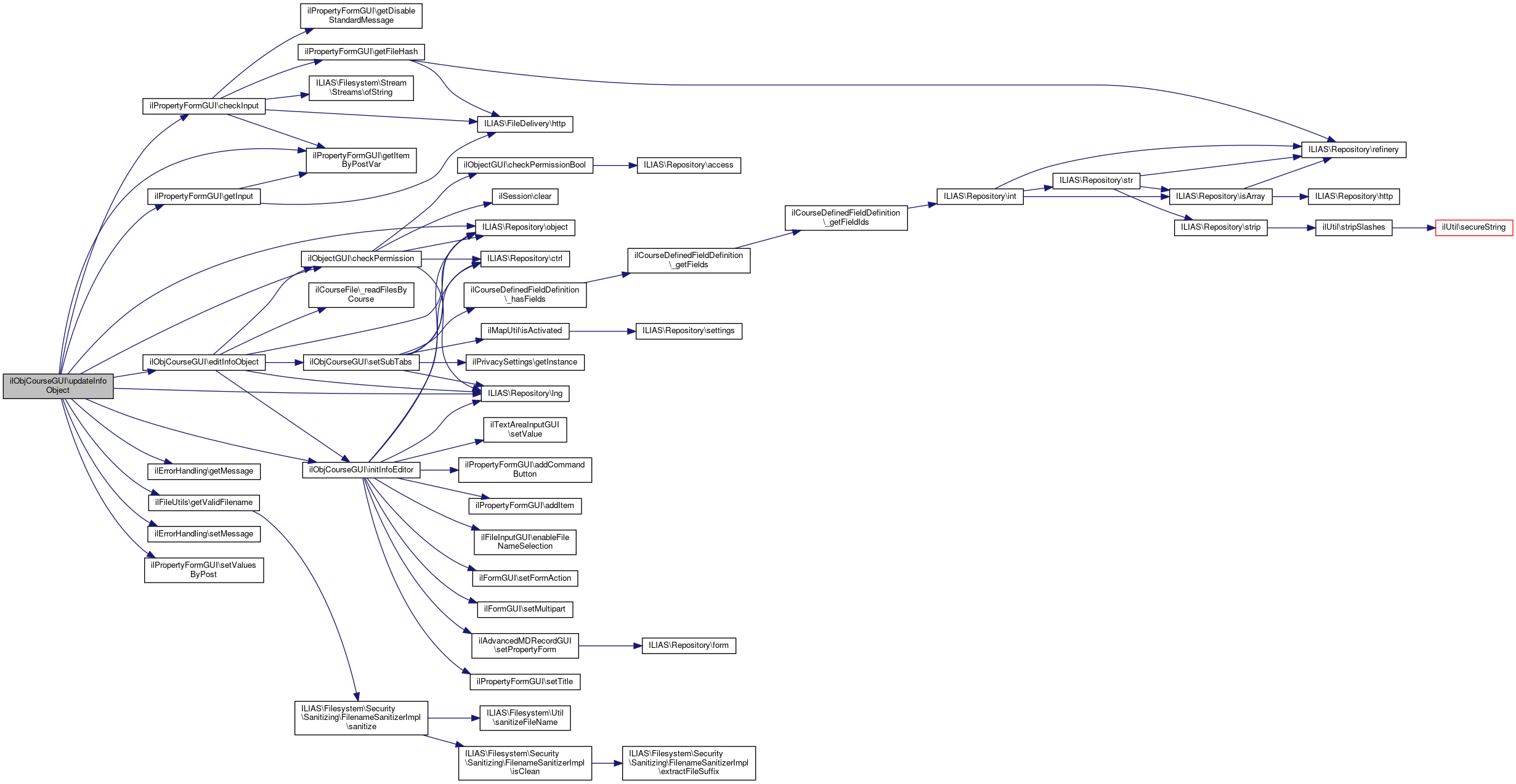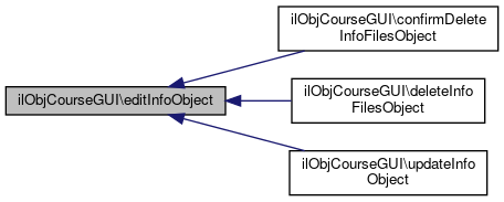 Here is the call graph for this function:| ilObjCourseGUI::updateInfoObject | ( | ) |