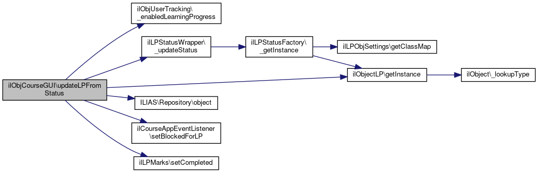 References ilObjUserTracking\_enabledLearningProgress(), ilLPStatusWrapper\_updateStatus(), ilObjectLP\getInstance(), ilLPObjSettings\LP_MODE_MANUAL_BY_TUTOR, ILIAS\Repository\object(), ilCourseAppEventListener\setBlockedForLP(), ilLPMarks\setCompleted(), and ilObjCourse\STATUS_DETERMINATION_LP.
