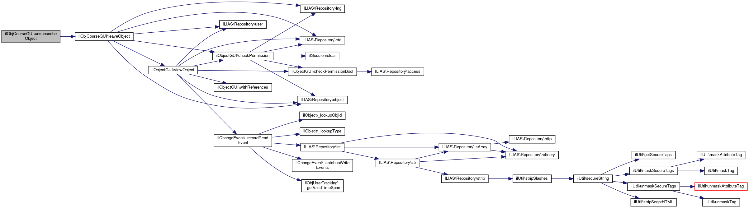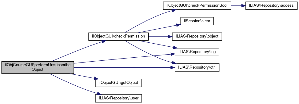 Here is the call graph for this function:| ilObjCourseGUI::unsubscribeObject | ( | ) |