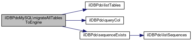Here is the call graph for this function:| ilDBPdoMySQL::migrateAllTablesToEngine | ( | string | $engine = ilDBConstants::MYSQL_ENGINE_INNODB | ) |