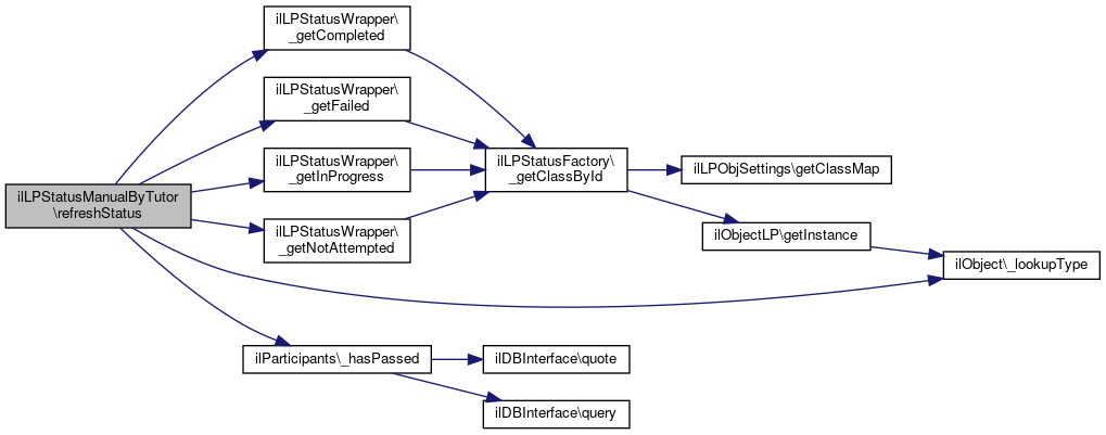 References ilLPStatusWrapper\_getCompleted(), ilLPStatusWrapper\_getFailed(), ilLPStatusWrapper\_getInProgress(), ilLPStatusWrapper\_getNotAttempted(), ilParticipants\_hasPassed(), and ilObject\_lookupType().