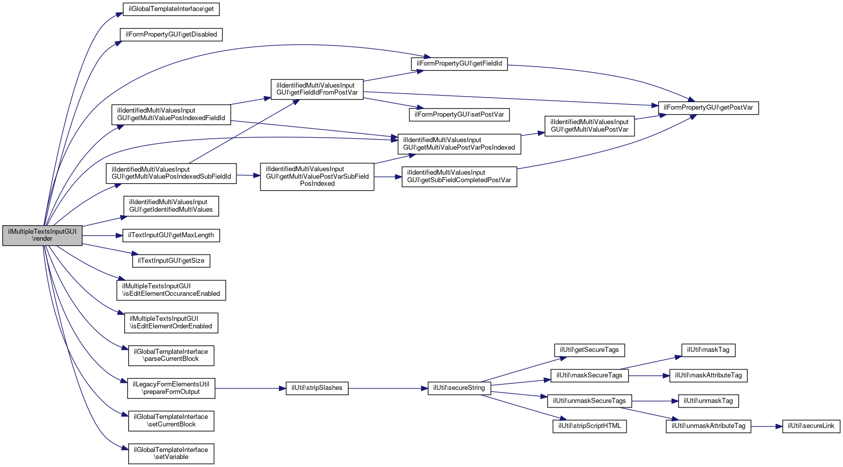 Here is the call graph for this function:| ilMultipleTextsInputGUI::render | ( | string | $a_mode = "" | ) |