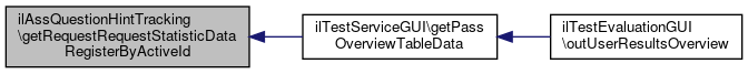 Here is the caller graph for this function:| ilAssQuestionHintTracking::getRequestStatisticDataByQuestionAndTestpass | ( | ) |