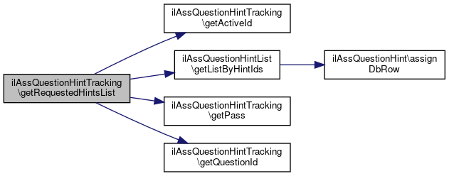 Here is the caller graph for this function:| ilAssQuestionHintTracking::getRequestedHintsList | ( | ) |