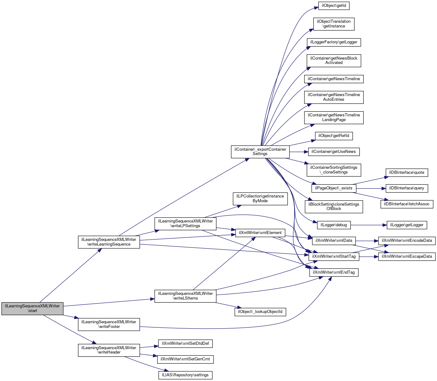Here is the call graph for this function:| ilLearningSequenceXMLWriter::start | ( | ) |