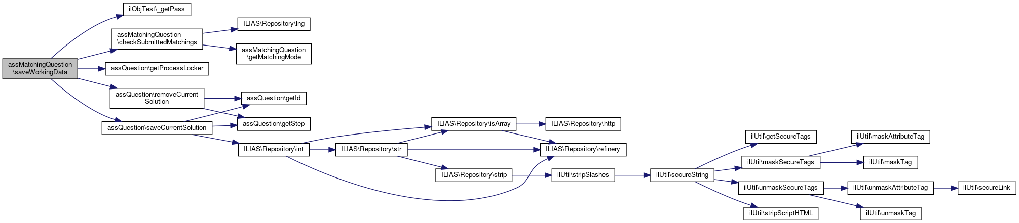 Here is the call graph for this function:| assMatchingQuestion::saveWorkingData | ( | int | $active_id, |
