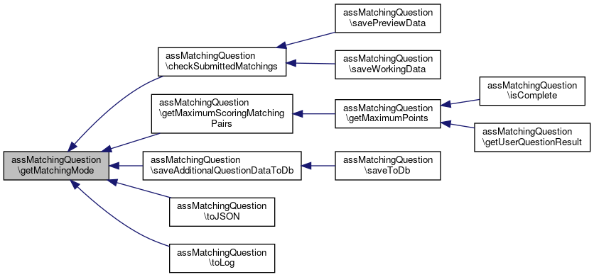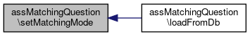 Here is the call graph for this function:| assMatchingQuestion::setMatchingMode | ( | string | $matching_mode | ) |
