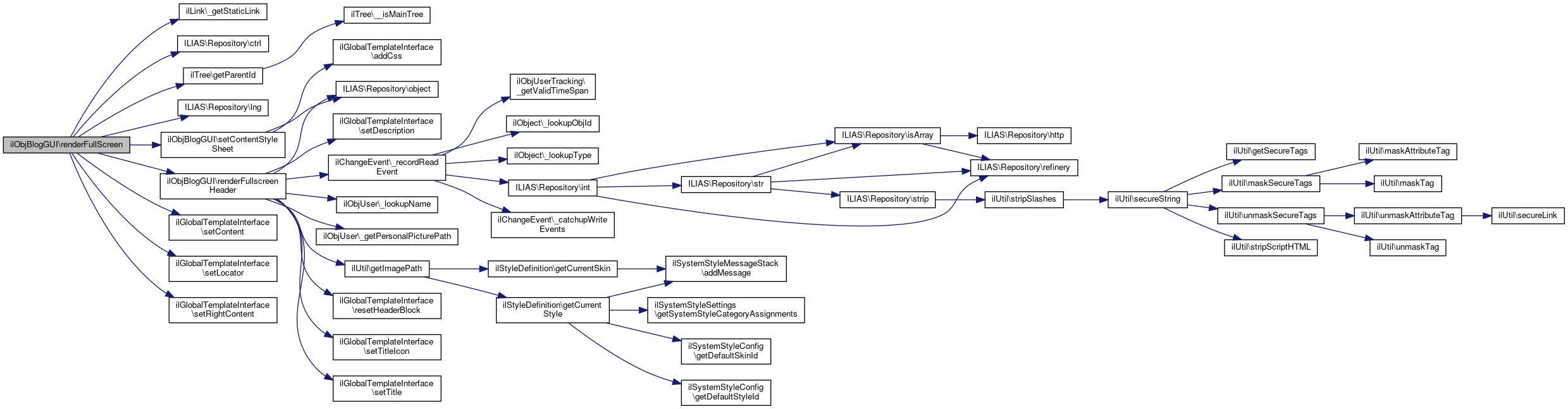 Here is the call graph for this function:| ilObjBlogGUI::renderFullScreen | ( | string | $a_content, |