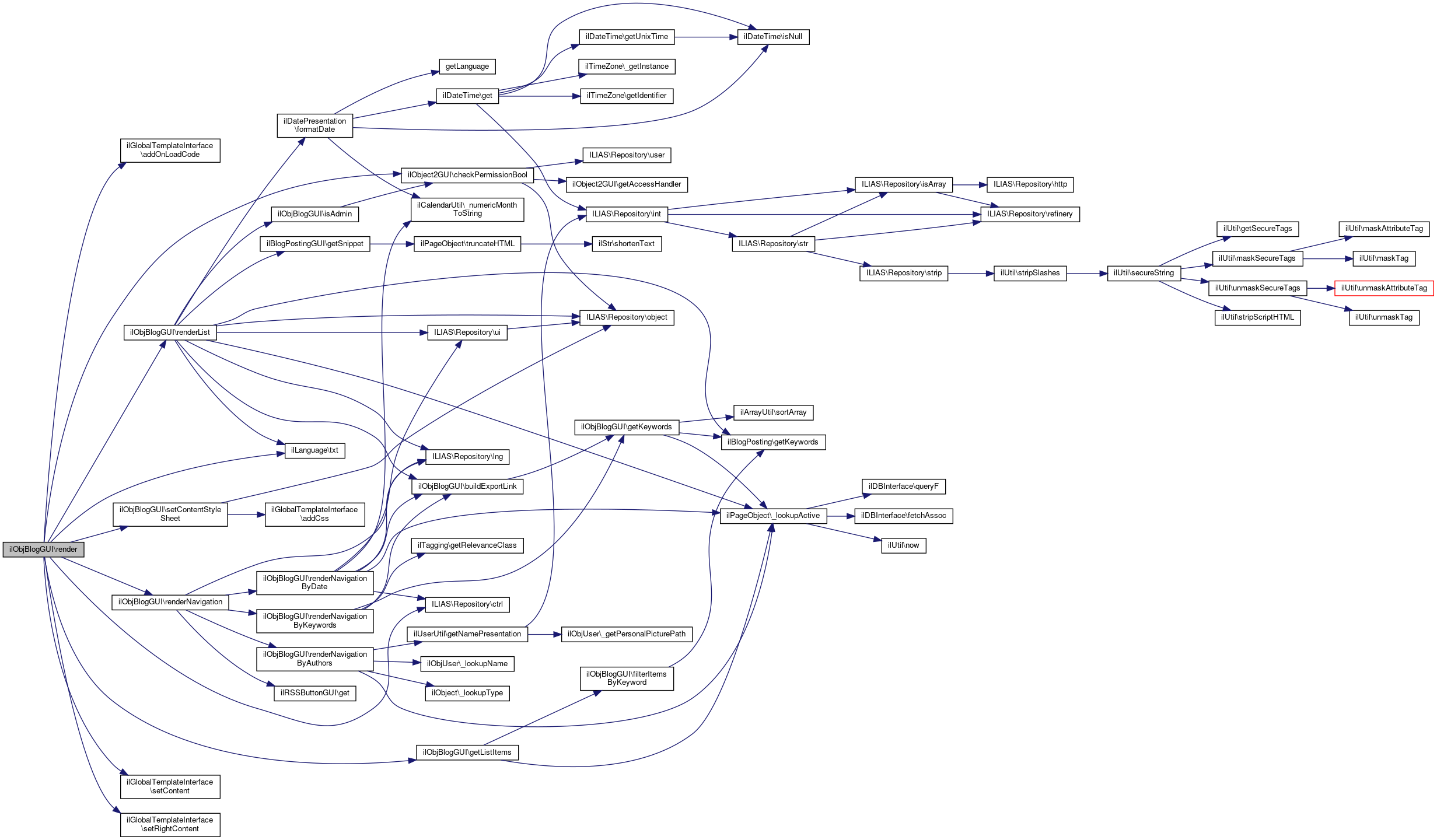 Here is the call graph for this function:| ilObjBlogGUI::render | ( | ) |