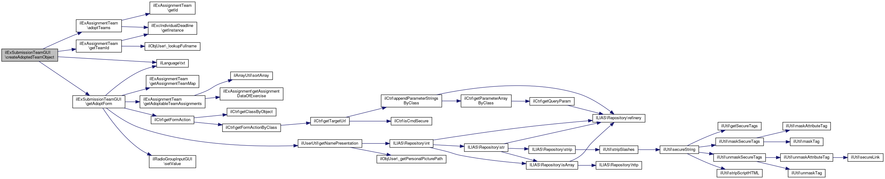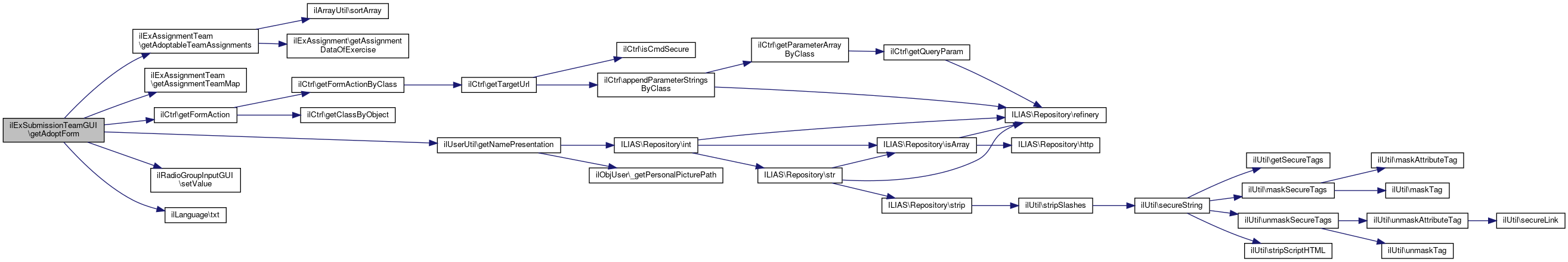 Here is the call graph for this function:| ilExSubmissionTeamGUI::getAdoptForm | ( | ) |